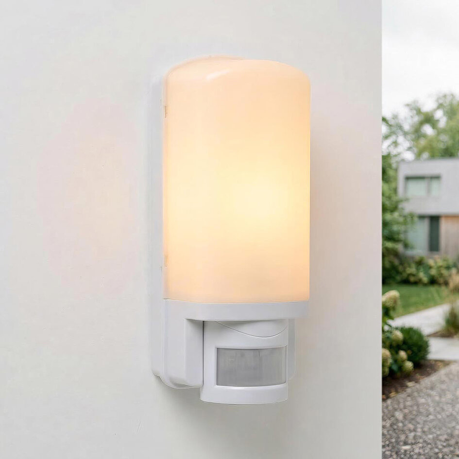 De witte wandarmatuur MOTO is een armatuur met bewegingssensor die uitermate geschikt is voor binnen- en buitengebruik. Door de IP44 waarde is deze lamp namelijk spatwaterdicht. De detectieradius van de sensor is 12 meter. De armatuur beschikt over een E27 fitting voor een lamp van maximaal 60 watt. De armatuur wordt exclusief lamp geleverd.